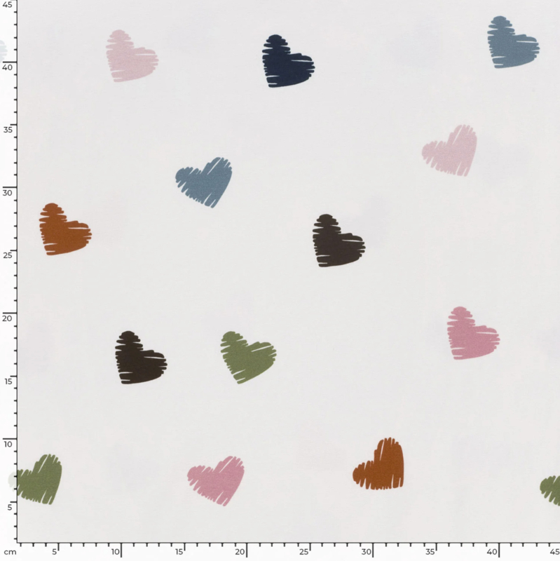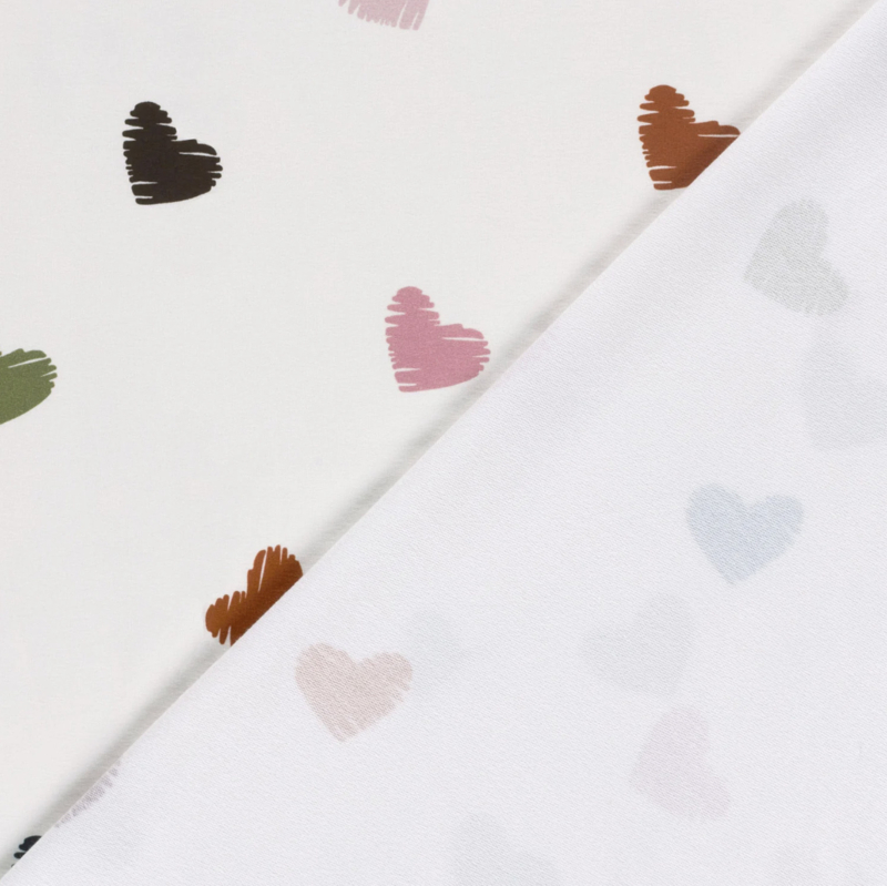 French Terry stof Harten gebroken wit