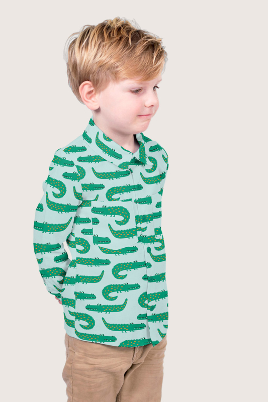 Katoen Poplin bedrukt Krokodillen Babyblauw