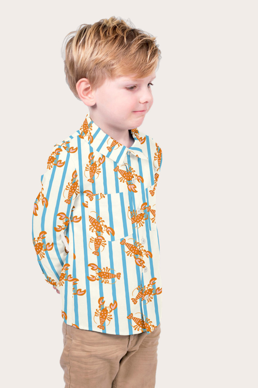 Katoen Poplin bedrukt Kreeft Gebroken wit