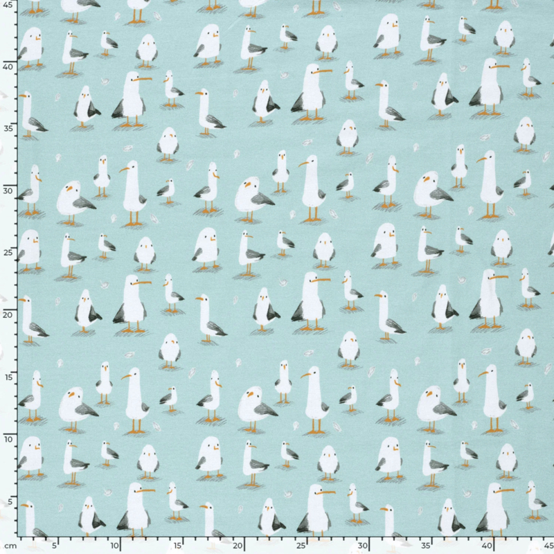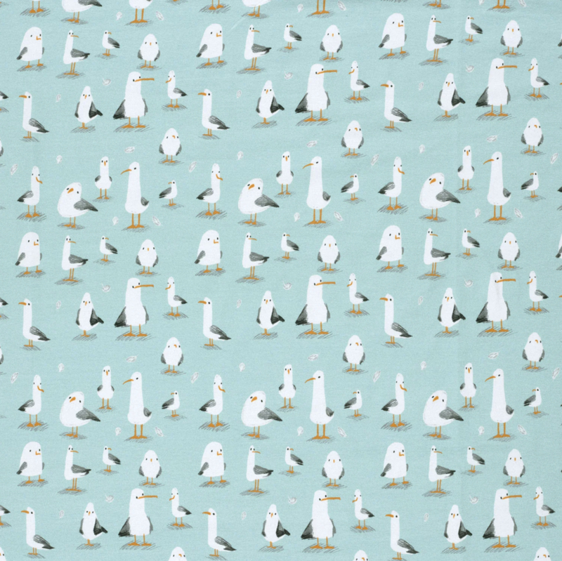Tricot print bedrukt Zeemeeuw Babyblauw