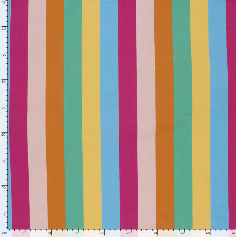 French Terry stof digitaal bedrukt Strepen Fuchsia