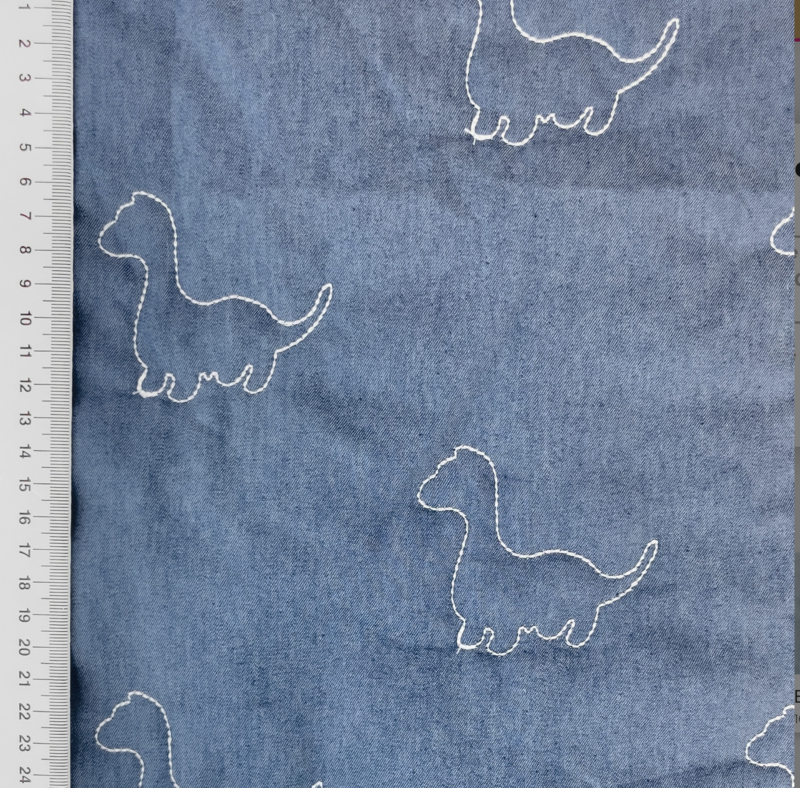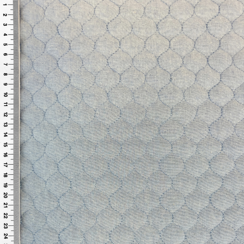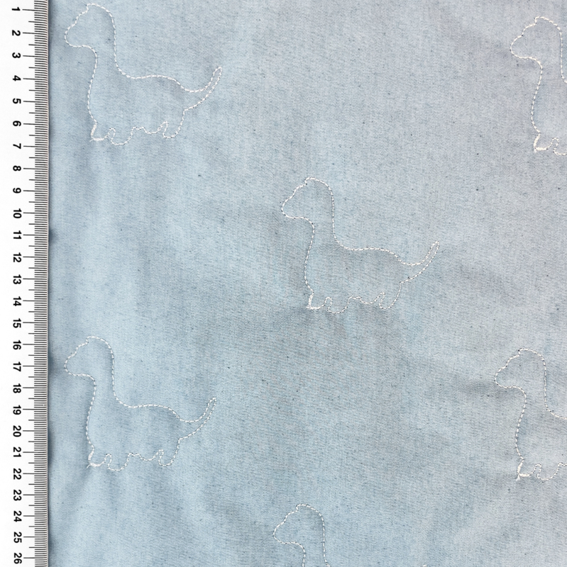Gewatteerd Dino Denim - LichtblauwZachte gewatteerde jeansstof met een zachte fiberfill vulling. Ideaal voor baby en kinderprojecten zoals jasjes, voetenzakken wandelwagen en andere leuke baby-items.
