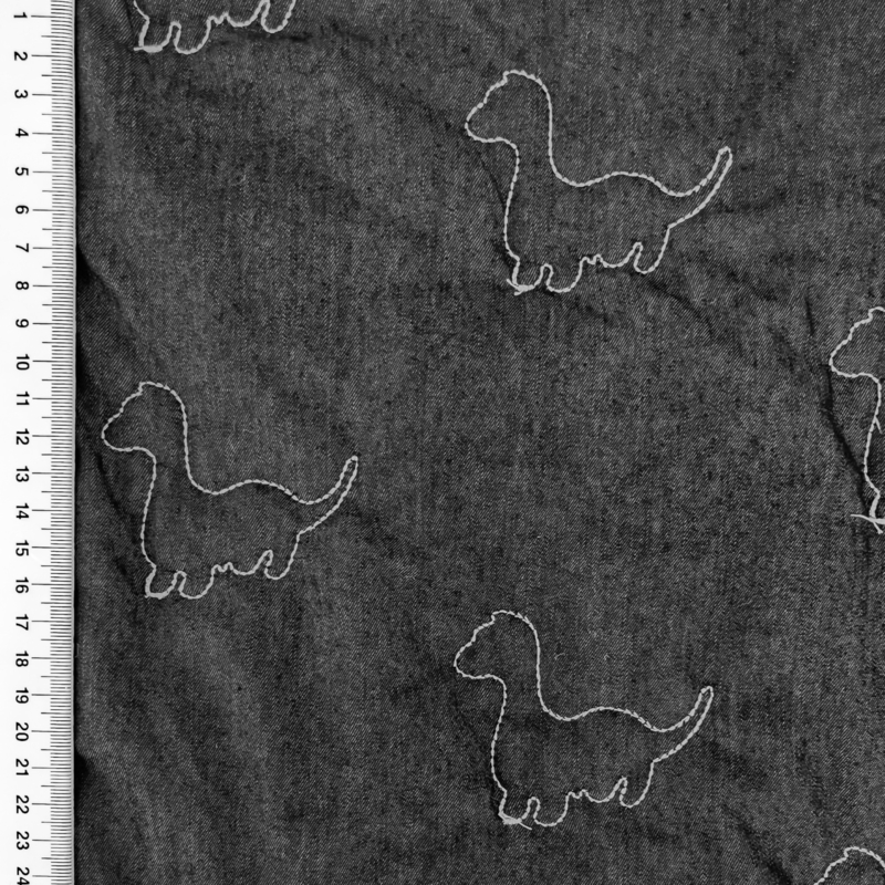 Gewatteerd Dino Denim - ZwartZachte gewatteerde jeansstof met een zachte fiberfill vulling. Ideaal voor baby en kinderprojecten zoals jasjes, voetenzakken wandelwagen en andere leuke baby-items.