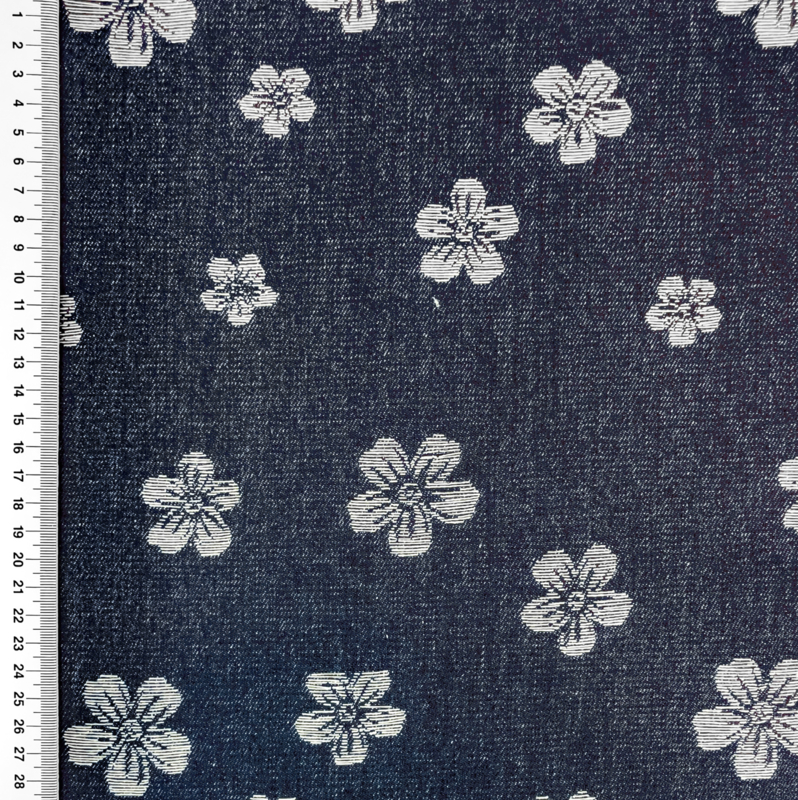 Jeans Jacquard Flower - Donker BlauwSamenstelling 80% CO 20% RAYON