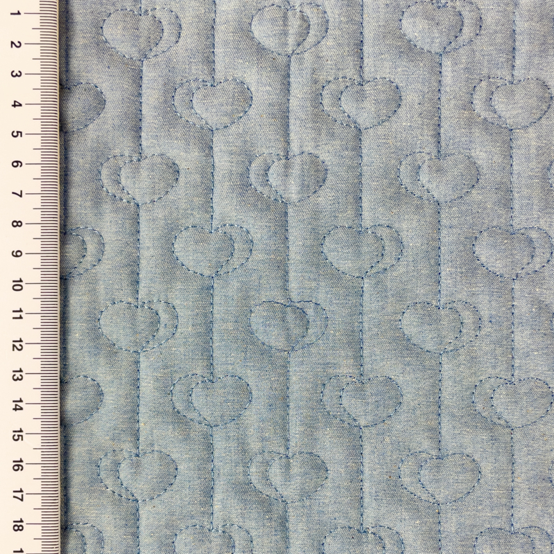 Gewatteerd Jeans Hearts - JeansZachte gewatteerde jeansstof met een zachte fiberfill vulling. Ideaal voor baby en kinderprojecten zoals jasjes, voetenzakken wandelwagen en andere leuke baby-items.