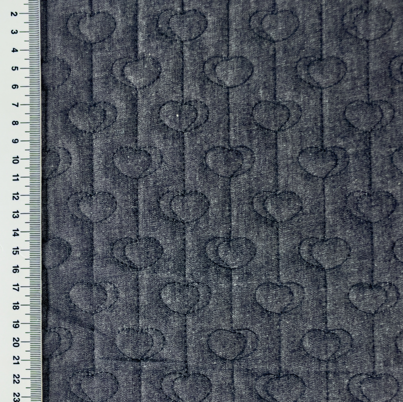 Gewatteerd Jeans Hearts - MarineZachte gewatteerde jeansstof met een zachte fiberfill vulling. Ideaal voor baby en kinderprojecten zoals jasjes, voetenzakken wandelwagen en andere leuke baby-items.